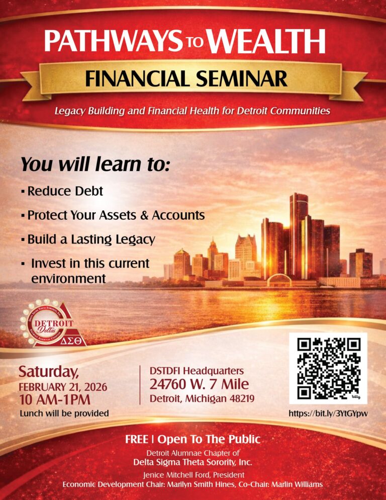 The Detroit Deltas continue to service Detroit, Hamtramck, Harper Woods, Highland Park and the Grosse Pointes through the Sorority’s Five Point Programmatic Thrust: Economic Development, Educational Development, International Awareness and Involvement, Physical and Mental Health, and Political Awareness. We are committed to continuing our legacy of service and meeting today’s needs during the 2025-2027 biennium by moving Forward Together with each other and the community.